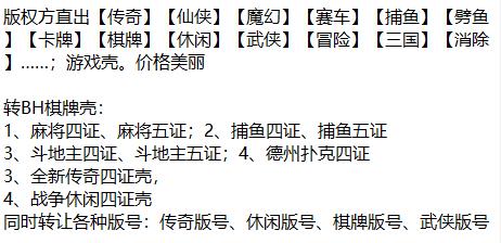 麻將五證;麻將四證;捕魚五證;跑得快+麻將五證;斗地主五證;斗地主+麻將五證;五子棋四證;象棋四證;十三張四證;字牌四證;